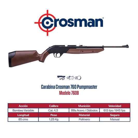 Kit Carabina Crosman Pumpmaster 760B Cal. 4.5 + Lata de Diábolos + Bote de Munición