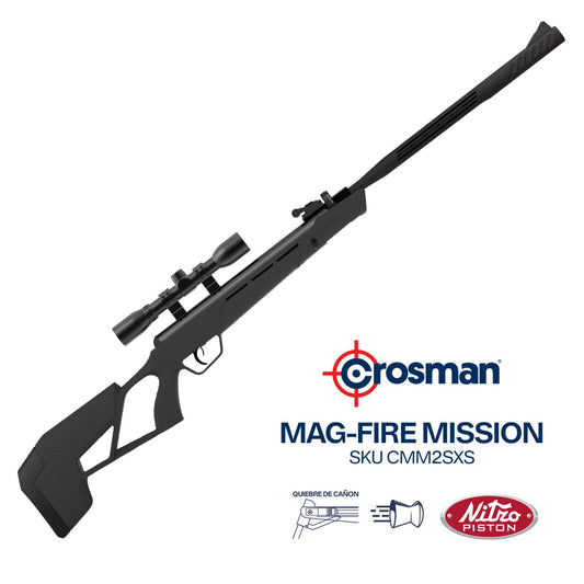 Kit Carabina Nitro Pistón Crosman Mag-Fire Mission Cal. 5.5 con Mira Telescópica + Lata de Diábolos