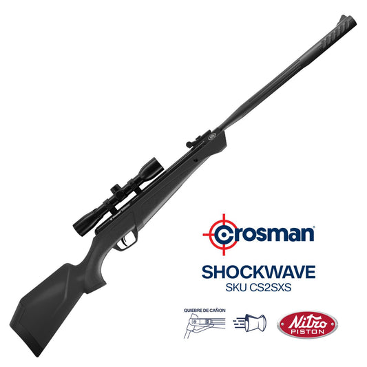 Kit Carabina Nitro Pistón Crosman Shockwave Cal. 5.5 con Mira telescópica + Lata de Diábolos