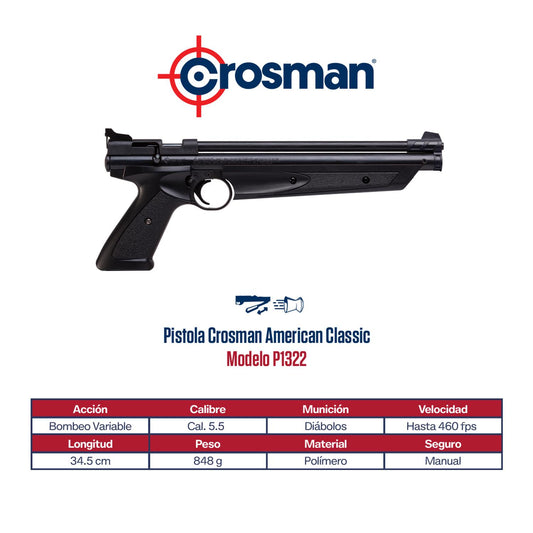 Kit Pistola Bombeo Crosman American Classic Cal. 5.5 + Lata de Diábolos
